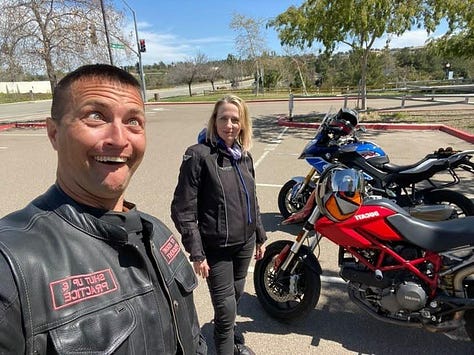 We did the ride that he does on the regular in that area (follow his insta—you’ll see). It was intimidating to have an instructor say, “you ride in front of me, I want to follow your lines.” For many years I was simply a rider that had been taught how to ride in her teens and didn’t take any training post the first lesson of, “That’s the throttle and brake, this one’s the clutch, and there’s your shifter. It’s 1 down and 5 up... got it?” I wasn’t familiar with the bike, the handling was very different than my Kawasaki Ninja, and I wasn’t going to ride like a demon. Was he expecting me to ride like a demon? Was he looking for “street-Rossi”?